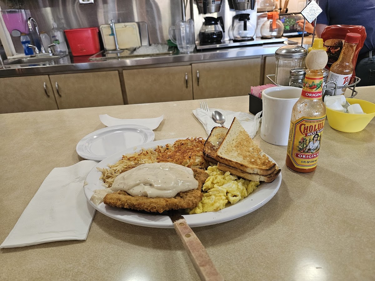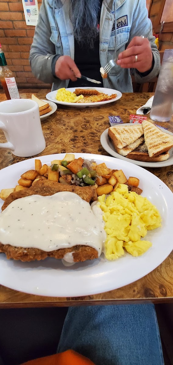 Sky Rider Cafe is a genuine rural Arizona dining experience! My wife and I had lunch and chose the country-fried steak entree and French dip sandwich. The dining atmosphere is very American, with many hanging models of WW2 airplanes and photos of aircraft on the walls. Service was excellent, and food portions generous. In another recent visit, I had a wonderful sausage & egg breakfast, with biscuit & gravy! Please visit Sky Rider Cafe, as these little spots of Americana are rapidly disappearing.